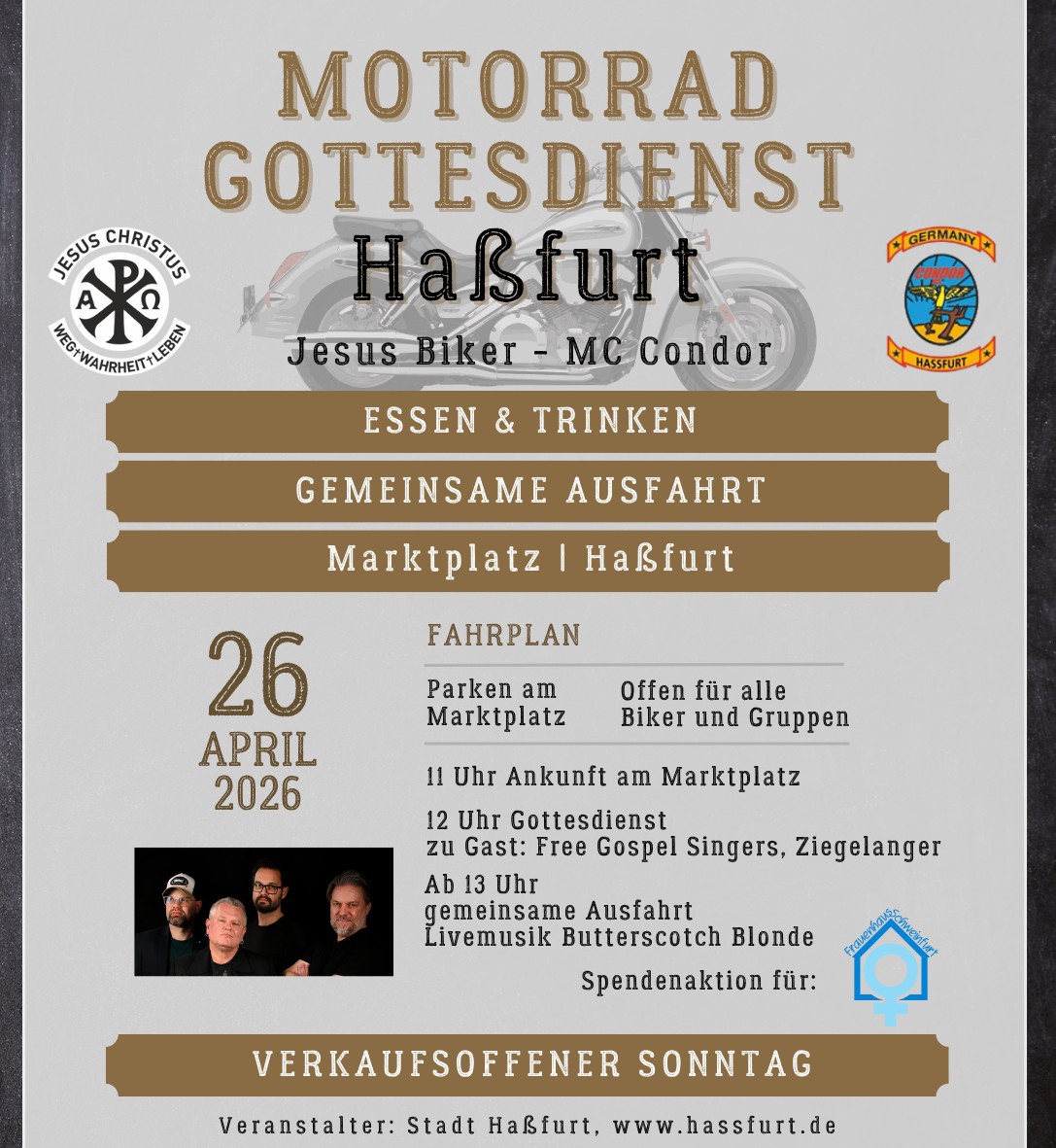 Schon ab 12 Uhr startet auf dem Marktplatz ein besonderes Highlight: der Motorradgottesdienst. Wenn die Bikes einrollen und Gemeinschaft spürbar wird, entsteht eine ganz besondere Atmosphäre – für Biker und alle Besucher gleichermaßen.